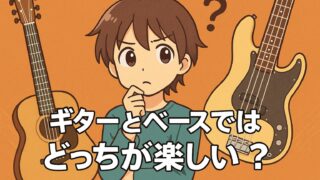 こちらでは、ギターとベースではどっちが楽しいのかを比較しながら、あなたの性格や目的に合った楽器の選び方などをまとめました。ギターとベースは見た目は似ていても、その役割や楽しみ方には大きな違いが!「初心者が始めやすいのは?」などの疑問も解決!