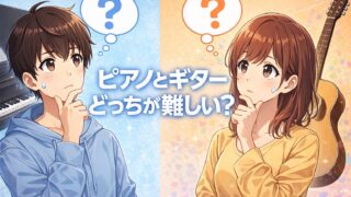 こちらでは、ピアノとギターではどっちが難しいのか、練習方法の違いや向き不向き、弾き語りへの適性、両立の可否をまとめました。ピアノとギターのどっちが難しいかは人によって違うものの違いや魅力を理解することで自分に合う楽器を見つけやすくなるでしょう!